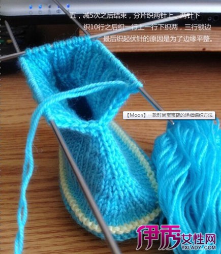 第五步:减五次之后结束,分片织两针上,两针下;织十行之后织一行上,一行下,织两三行锁边;最后织起伏针的原因是为了边缘平整。