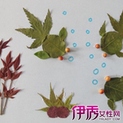 把前面剪好的6个圆形的树叶依次分别粘贴在椭圆形的两侧,到这里,三条金鱼全面完成啦!再做一些装饰就可以了。可以用两片柳树的叶子,在叶子背面涂抹上胶水后粘贴到喜欢的位置;另外,我们不妨用水彩笔画一些波浪线作为小河。就这样,作品完成啦!简单的树叶拼贴画制作步骤:树叶,拼贴画,树叶拼贴。工具/材料:各种树叶、剪刀、胶水或双面胶。拼贴方法:1、先采集各种颜色和形状的树叶。2、将收集来的树叶进行安置摆放,构思出大体的图案。我这里是拼出了一个可爱的小女孩,给她画上了漂亮的眼睛。