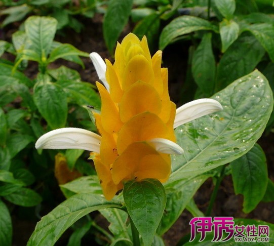 花序上密生金黄色花苞片和洁白色小花,极为美丽。只要莳养得法,有充足的光照和15度以上的温度,一年四季鲜花不断。 盆栽宜选用疏松肥沃、排水透气良好的策酸性土壤。一般可用腐叶土加1/3河沙,另加少量骨粉混匀配制的培养土。粘土和沙土都不适宜其生长发育。金苞花比较喜欢阳光,北方地区栽培,春秋季节放室外养护,一般不需要遮光,但夏季中午前后需适当遮光。冬季放室内光线充足处则叶色鲜绿富有光泽,株形紧凑,花序大,色泽艳丽。若遭到烈日曝晒,易导致叶片萎黄,叶缘枯焦。