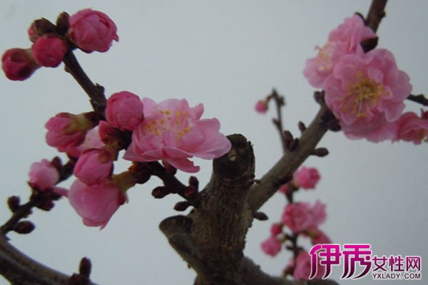 梅花的整枝和修剪。3月上旬以后将上年的发育枝和花枝留1~2个芽短截,并剪去纤细枝、重叠枝、枯枝、徒长枝、老干和主枝上萌发的新芽,要根据造型需要去还是留,决定去掉的要立即抹去。新枝长到25厘米左右时,可捻顶或摘去枝梢,以促使花芽分化和花蕾生长开花。 梅花翻盆多在花后进行,一般老桩2~3年翻盆1次,若树龄不长的梅花可1~2年翻盆1次。翻盆时要去掉旧盆土约一半,盆底施好基肥,换入新的疏松肥沃、富含腐殖质的沙质培养土。
