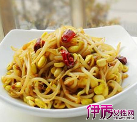 2.锅内加油烧热,放入葱(切)花、蒜(切)片炝锅,烹入料酒,放入黄豆芽、酱油略炒,再加入白糖、鲜汤、精盐烧开;