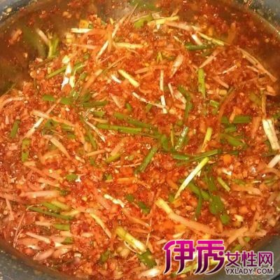 做法三:主料:白萝卜500g;调料:食盐5g、姜3g、蒜3g、辣酱20g、白醋20ml、白糖25g、细香葱、鱼露;做法:把洗净切成条,加入盐腌制30分钟,把蒜剥皮拍碎,香葱、姜切,把葱姜蒜碎,加入白醋、韩式辣酱、白糖 、露搅拌均,成辣椒糊,把腌制的萝卜条挤去水分,加入辣椒糊搅拌均匀放入冰箱冷藏,腌制1天口感更好。小诀窍:食用的时候还可以撒入芝麻~