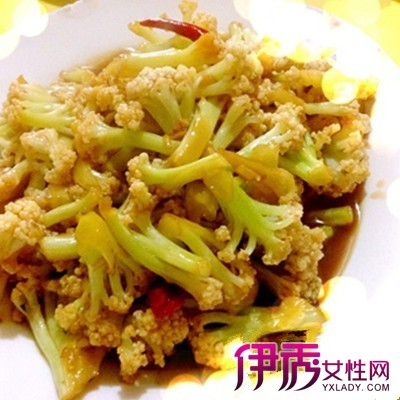 2.菜花切成小块,沸水焯一下,再用醋熘,多用于饮酒时食用,有酸甜开胃生津之功。