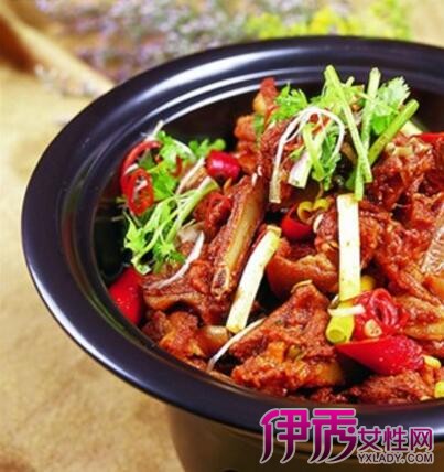 3.羊肉煲:将羊肉洗净后用清水加花椒和料酒浸泡20分钟;取出控水,冷水入锅焯水;捞出冲净浮沫;将香叶,草果,八角桂皮连同羊肉一同放入压力锅,25分钟后捞出,炒锅放油烧热,将葱、姜、排骨酱、放入炒香;将羊肉下锅,加白糖,酱油适量翻炒均匀,放青红小红椒,加入羊肉汤,焖至汤汁浓稠即可。