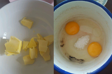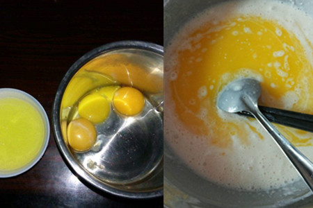 step6、继续对鸡蛋进行处理,将其完全打散。随后,将水、牛奶和奶油进行混合,然后依次倒入,在此过程中,你需要分多次将黄油加入。