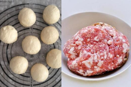 然后我们将面团放置在比较温暖的地方,放置半个小时之后,面团就发好了,然后我们将面团分成大小合适的小面团,将它们稍微压扁一点,做成包子的面皮。然后我们就可以开始制作包子的馅料了,今天为大家介绍一种肉馅包子的配料。想要制作包子的肉馅,首先我们需要准备一些新鲜的猪肉,然后将猪肉剁成肉馅,再准备一些葱姜蒜,将它们剁成碎。