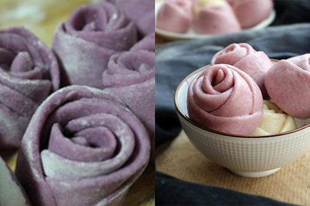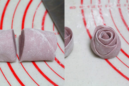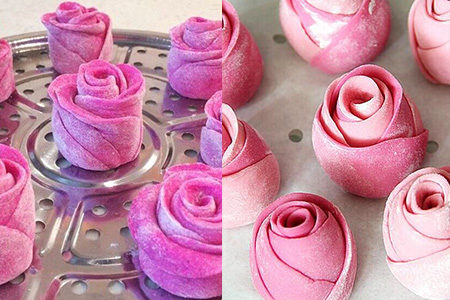 12.切口朝下后,一朵玫瑰馒头就做好啦。