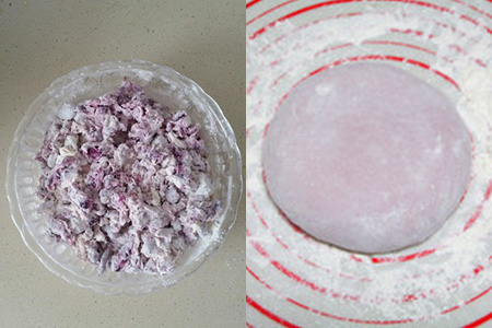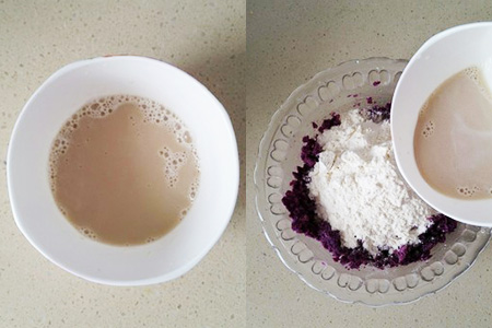 紫薯 80g,面粉 310g,酵母粉 4g,牛奶100g,水 适量。