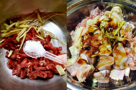 第二种炸酱的做法比第一种复杂,但是味道和营养都比瘦肉炸酱好很多,那便是牛肉香菇滑蛋炸酱。先需要把黄瓜洗干净,然后切成细小的丝状。把牛肉顺着纹理切片,切好片状后用刀背剁碎。再用生粉、酱油和适量的盐腌制半小时以上。把香菇切成适量大小的块状,蛋打成蛋液后,在锅内倒入一两油,在把蛋液倒进去大火煎熟。这样,材料就备好了。
