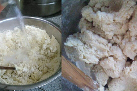 黏米粉需要用温水和面,一边倒水一边搅拌,这种面粉粘性大,容易沾手,多放一些水就可以了。面团和好之后,我们需要醒面,这个过程需要两个小时。有些地方喜欢吃甜食,会在和面的时候加一些白砂糖进去。