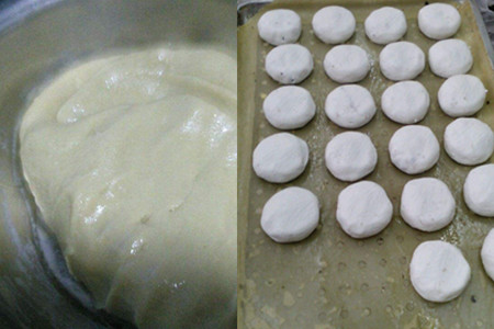 面团醒好后,我们就可以开始制做了,先分成若干个小份,揉成球后再压扁,擀成直径五厘米左右就可以,然后把准备好的豆沙或者白糖包进去,合好擀扁就可以。