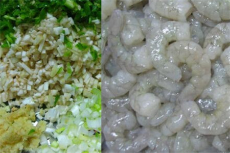 第三步,可以在馅料里面添加黑木耳和虾仁,但是虾仁要用红酒腌制十五分钟,再一起倒入和好的肉馅中去。再把葱姜切成末,放到一边放入蒸锅的时候备用。