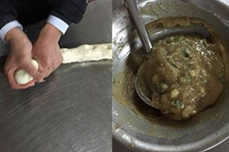 擀好后的面团就可以在上面抹上一层酥油,面片尽量控制在四毫米左右,长大概20厘米。酥油上好之后,就可以在上面裹一层馅料,馅料要提前腌制好。面片包好馅料后就可以揉成面胚包,这个时候再上面撒一点芝麻以及扫一层油。这个时候就可以把酥饼放入烤箱里烤熟。