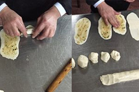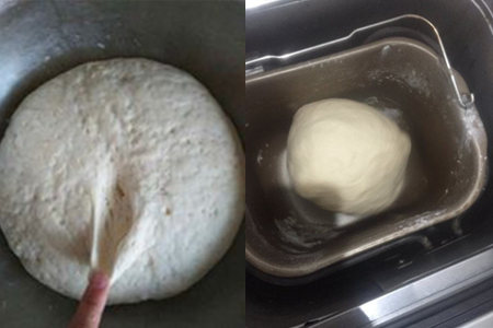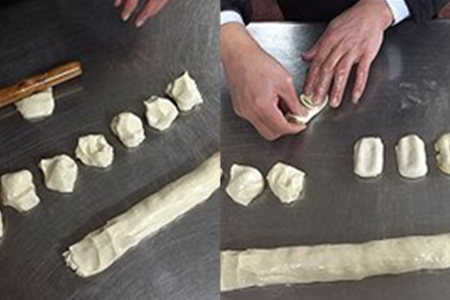 醒好后的面团好分成若干份,再用擀面杖把面团擀开。