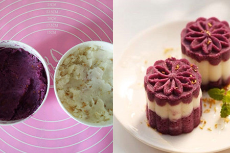 紫薯山药糕被称作是中国的提拉米苏,紫薯山药的结合,紫白相间给人一种清新的感觉,而且山药和紫薯有助于肠道消化,平时要是吃太饱的话,可以试一下吃这个紫薯山药糕,口感丰富好过吃一个消食片吧。