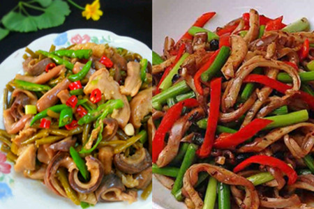 而想要做出的猪肚足够脆爽,除了要注意火候外,挑选猪肚也是非常重要的。那种个头较小的猪肚,肉质太嫩,用来爆炒的话很容易会又绵又难嚼,所以我们用来做这道菜的猪肚一定要挑选个头较大,肉质较厚的猪肚。且猪肚还需要特别新鲜,那种内里有冰水流出的猪肚,一定是被冷藏过的,肉质不够新鲜,挑选时一定要注意避免。