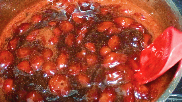 第二天草莓会变软并且析出很多水,冰糖也大部分溶化。这个时候就可以开始准备熬果酱啦!不过在这之前,需要先准备好消毒过的容器,方便果酱做好之后可以立即放进去。