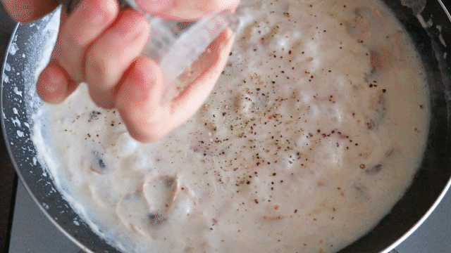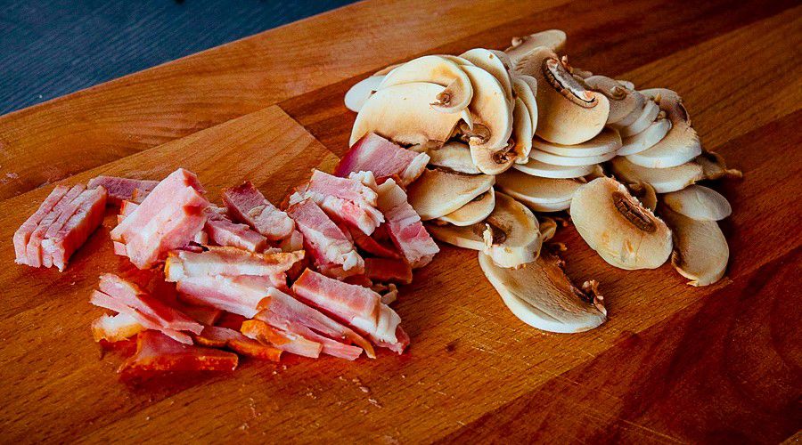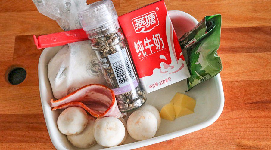 口蘑|黄油|培根|面粉|牛奶|黑胡椒|欧芹
