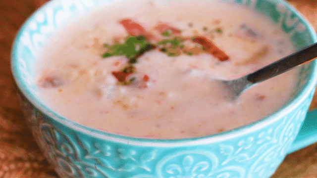 Anyway,今天跟大家分享一份非常简单的早餐食谱。十分钟就能搞定的奶香培根蘑菇浓汤。又香又滑,热热的一碗吃下去,从舌尖到胃无一不熨帖。早餐吃一碗,心情灿烂一整天。