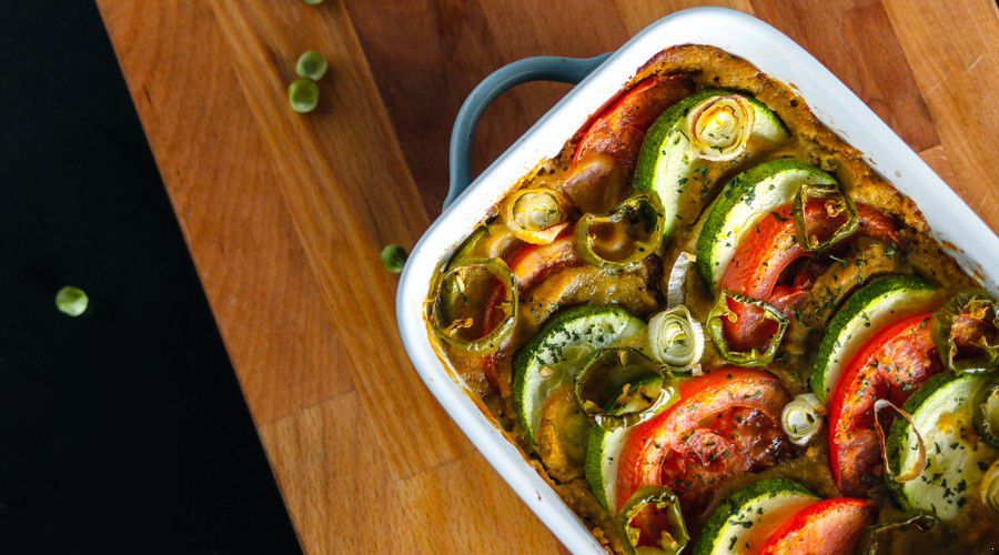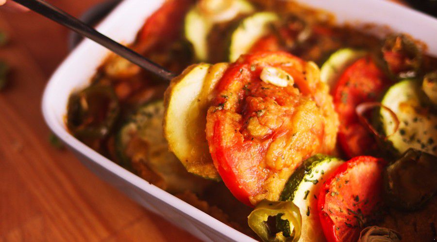 ▲ 这道菜称为普罗旺斯烤杂蔬。是一道因电影《料理鼠王》而声名大振的意大利家常菜。使用的蔬菜其实比较随意,只要容易切片就好。茄子、西葫芦、番茄、节瓜、彩椒等都是常见的原材料。烤之前先把不同颜色的蔬菜片间隔排列,让烤出来的菜品看上去色彩丰富,充满自然的情调。这道料理一次可以享用多种蔬菜,非常符合现代人的健康饮食观。