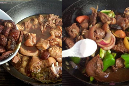 也可以先将羊肉用高压锅压至8分熟,再倒入炒锅中和配菜一起焖煮,这样省时又省力。