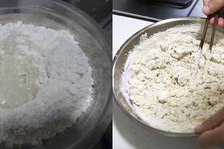 步骤一.将低筋面粉和高筋面粉加入水后和匀。