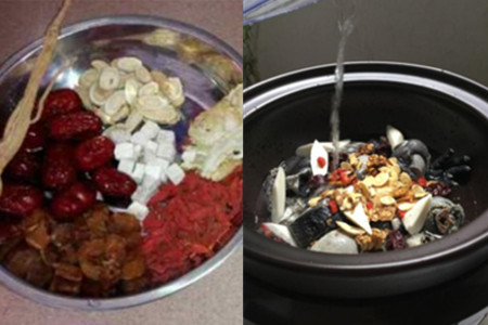第五步,把火调至最小,慢慢将乌鸡和药材的味道炖出来,然后放适量的食盐调味。