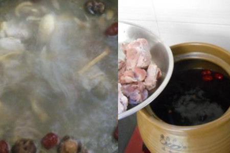 第四步,把捞出来的排骨放到煮药材的锅中熬制,并倒入适量的料酒,小火慢炖一到两个小时就可以调味食用了。