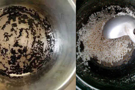 8.直接在锅底涂上牙膏后清洗。