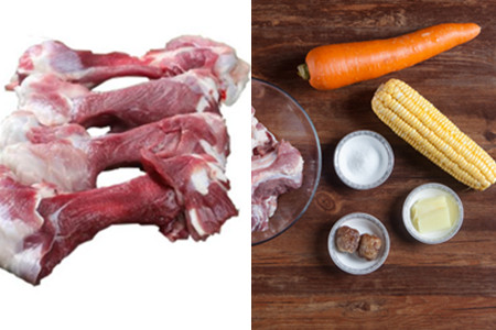 一、准备好胡萝卜、玉米、猪筒骨、生姜以及油盐等调味料。