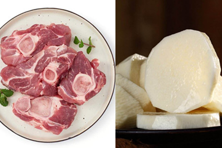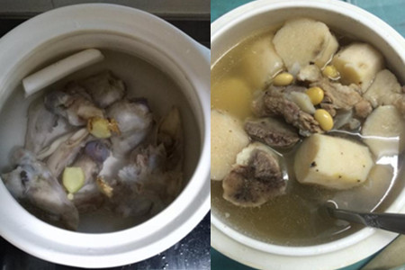 二、猪筒骨剁开,并且在滚开的热水中过一下。山药推荐选择细长型的铁棍山药,它的营养价值会更高。