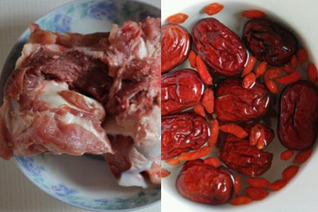 一、备好新鲜的猪筒骨、上好的红枣和枸杞、生姜、葱蒜等等。