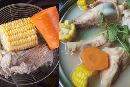 玉米对我们的脾胃具有好的作用,还能祛除我们体内的湿气。而胡萝卜则可以清肝明目,补充维生素。所以用胡萝卜玉米猪筒骨煲出来的老火汤能够健脾开胃,养护肝脏,维护视力。