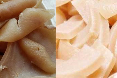 首先把猪皮洗干净,然后用专门的工具夹掉猪毛,把准备好的猪皮用刀切成颗粒状,大小适中。把颗粒猪皮放入水中煮,大约半个小时后猪皮就会又软又嫩,再加入其他的配料和相应的汤汁,猪皮就会更好吃。