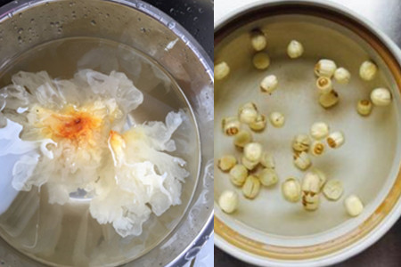 step1、对银耳和莲子进行处理,将两者提前放入水中进行浸泡,时间掌控在半个小时上下即可。