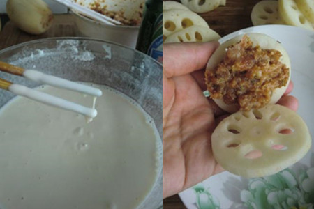 莲藕要选用九孔藕,九孔藕的味道更清脆,口感更好。面粉中加入适量糯米粉、澄粉、鸡蛋制成面糊,这样炸出来的藕夹更酥脆。面糊中加入适量啤酒,可以使得藕夹口感更加清香。藕夹下油锅后要用中小火,这样才能把藕夹炸熟,色泽也更漂亮,如果用大火,藕夹会炸得外焦里生。
