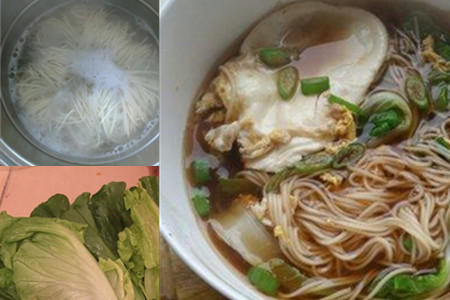 第三:面煮熟了就可以将鸡蛋倒入进去了,放入盐、味精就好了,可以放一些芝麻油进去更香。