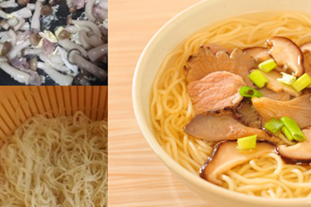 步骤1:你需要准备好蘑菇,猪肉以及挂面。蘑菇上面的杂质需要认真的处理干净,如果是大块的则需要用刀切成小块状,猪肉则需要用刀切成细条状。