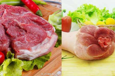 前腿肉中的瘦肉含量大概在二点五千克上下,原因是这个部位是数十块肌肉构成的,筋膜会更加多一些,而后腿肉中的瘦肉含量可以达到五千克,远高于前腿肉。