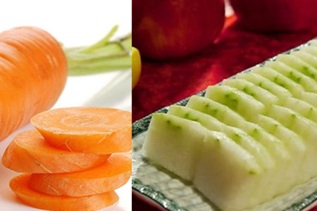 冬瓜 一个 胡萝卜 一根 猪肉 80克 香菇 3个 芹菜 2根 姜 2片 食盐 适量 豆油 适量 鸡蛋 3个 料酒 适量。