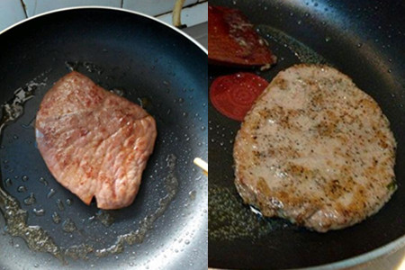 step4、根据个人的口味喜好决定煎的牛排的熟烂程度。