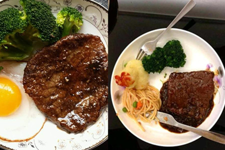 step7、食用前,在牛排上面淋一层黑胡椒汁即可。