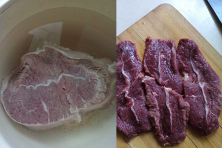 你需要准备得材料有:牛肉、洋葱、蚝油、黄油、酱油、牛排酱等。为了让牛肉保持风味,所以首先需要去血水。将牛肉放入清水中浸泡着,大概需要两个小时。去完血水之后,就是切片了。将牛肉切成大约一厘米左右的厚片,这样的厚度能够很好地控制烹饪的时间和火候。切完之后,就需要将肉拍松。用刀背轻轻地敲肉片即可,切勿用力过猛哦!