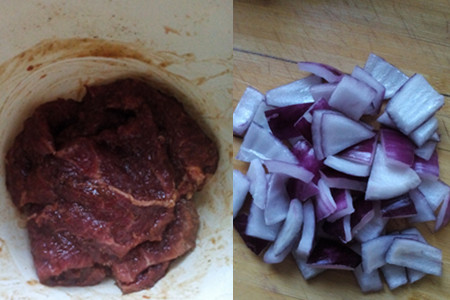 第二步:腌制牛肉及处理佐料。