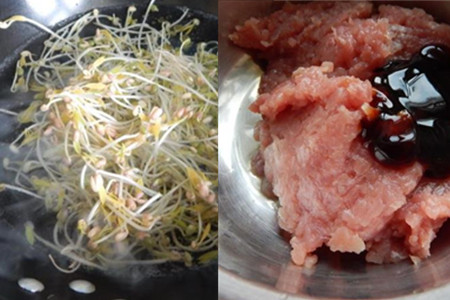 食材:豆腐皮300克、猪肉250克、豆芽100克、豆瓣酱、大料、生抽、蚝油、淀粉、料酒、盐、油。