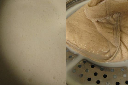 4.用纱布把豆浆过滤一下,将豆浆和豆渣分离开。