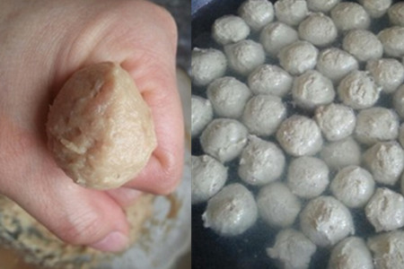 锅中放适量水,大火烧开之后转为小火,将适量肉糜包在手中挤压,从虎口处就可以挤出圆圆的丸子了。将丸子放入水中煮到全部浮起来关火捞出,就可以食用了。您也可以大批量制作,丸子煮熟沥干水分以后密封冷冻保存。