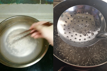step7、关火,过一遍冷水,此步骤的目的是使西米的硬度变得更高一些,随后把它放入碗中备用。