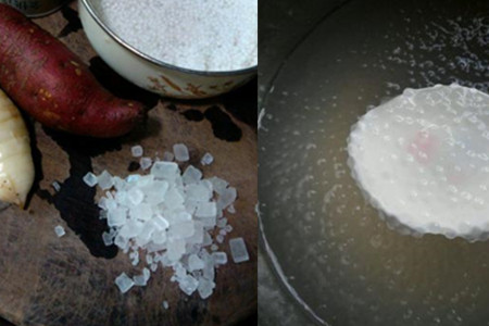 step1、进行食材准备,你需要芋头、西米、黑珍珠、冰糖以及蜜豆等。