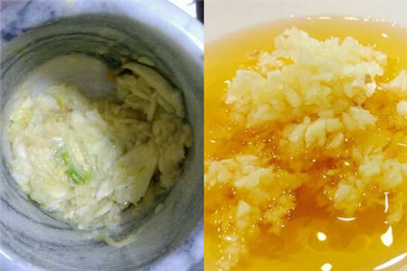 我们将大蒜全部捣碎,直到大蒜变成蒜泥为止。然后我们选择适量的大蒜放入之前准备好的碗中,这时大蒜和香油结婚和起来就已经非常的香了。对于部分比较喜欢吃大蒜的人来说,可以稍微多放一点大蒜。但是还是需要掌握好一个度,如果一次性食用过多的大蒜,对我们的身体来说也会造成一定的影响。